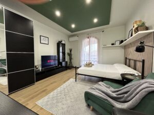 The apartment is also equipped with fast Wi-Fi, air conditioning to maintain a comfortable temperature in all seasons and security sensors to ensure guests’ peace of mind.